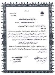 از آنجائیکه در راستای تحقق رهنمودهای مقام معظم رهبری (مدظله العالی)، با هدف شناسایی و بهره گیری از ظرفیتهای دستگاهها، در اجرای برنامه های ابلاغی مطابق با شیوه نامه نظام جامع ارزیابی ستاد اقامه نماز مرکز و استان در سال 1398 اقدام مؤثر و با امتیاز عالی داشته اید، بمصداق بیان: « من لم یشکرالمخلوق لم یشکر الخالق »، از زحمات جنابعالی و همکاران گرامیتان صمیمانه تقدیر می گردد. توفیق روزافزونتان را در جهت نشر و ترویج فرهنگ نورانی نماز، از آفریدگار منان مسئلت می نمائیم.
